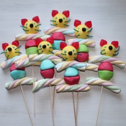 | Nombre de bonbons : | environ 8 par brochette ( bonbons et sujet sucre ) |