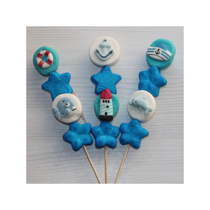 Brochette de bonbons sur le thème de la mer pour un avant goût de vacances ou pour simplement les amoureux de la grande bleue