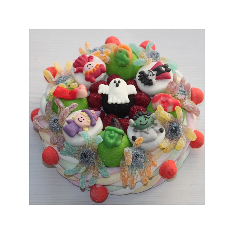 Retrouvez sur ce gâteau de bonbons spécial Halloween avec 5 personnages en sucre et divers bonbons HALLOWEEN ......Ouhhhhhhh !!