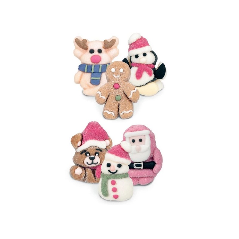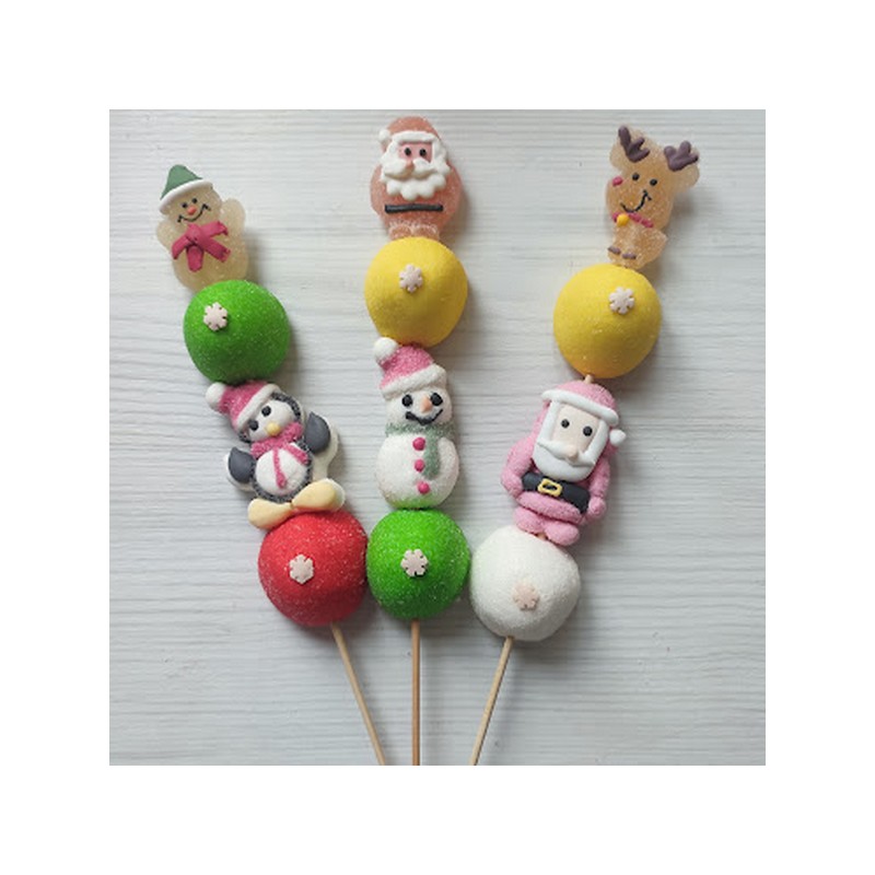 Magie de Noël avec cette brochette de fêtes mélangeant personnages en guimauve et bonbons