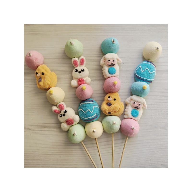 Brochettes de bonbons réalisées avec différentes guimauves ( modèle aléatoire )
